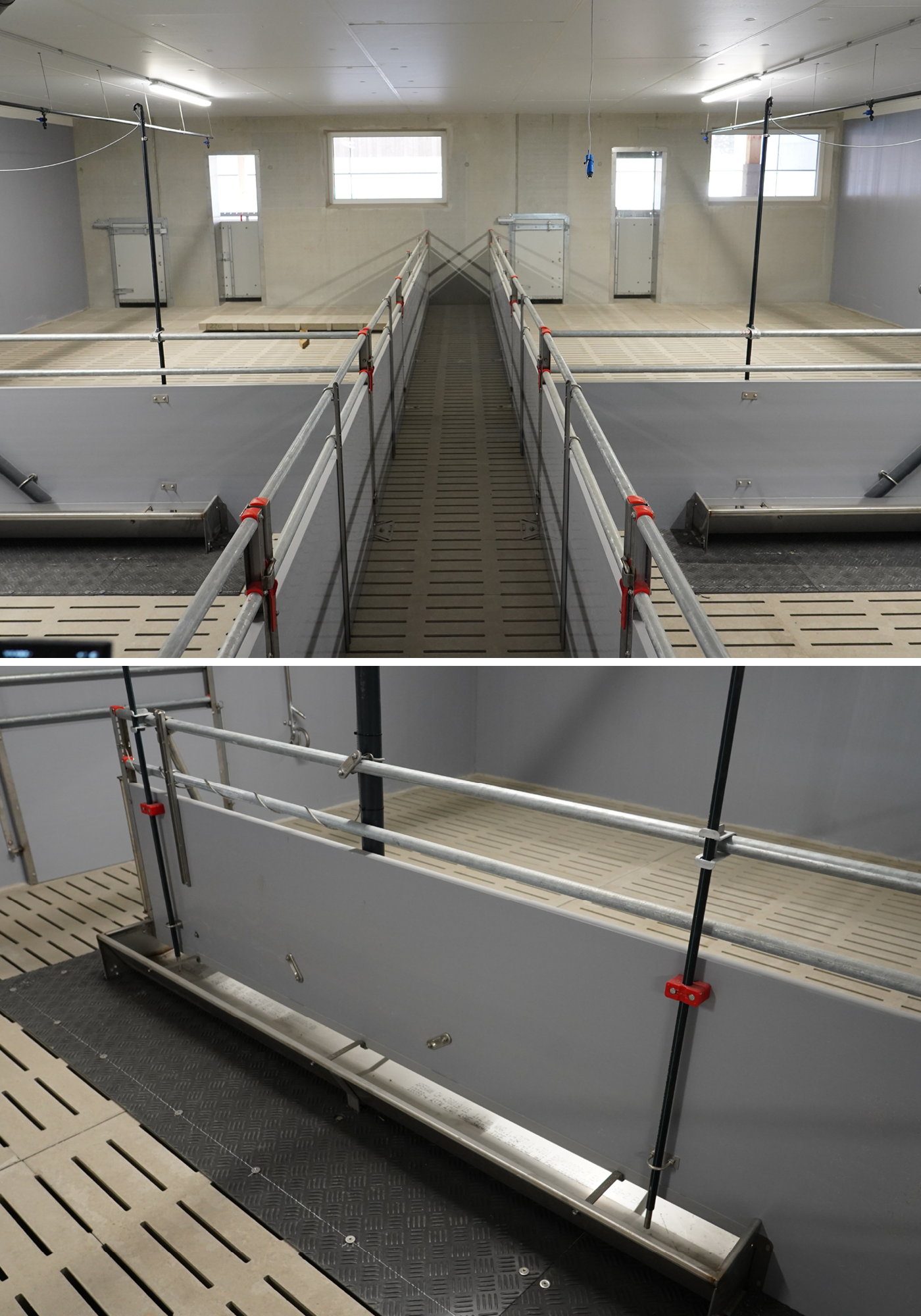 Robustne rešetke su namerno dizajnirane da se zatvore kako bi se izbegao stres za svinje u prostoru za stajnjak.